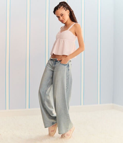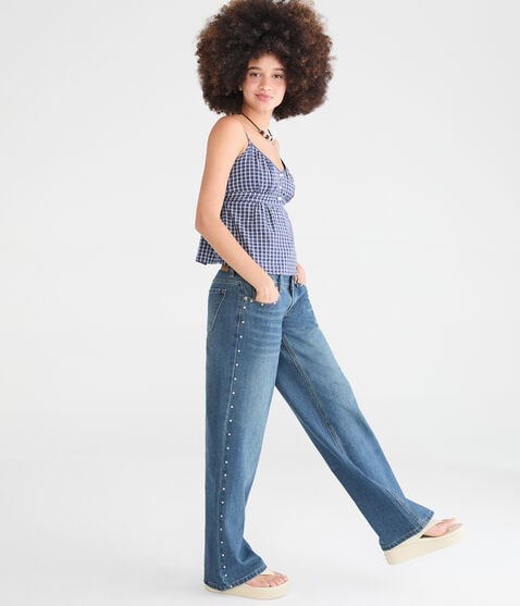 This year, Aeropostale has seriously stepped up their denim game. They’ve released a variety of wide leg jeans for women that check every box—style, sustainability, comfort, and fit. We’re talking low-rise cuts, recycled cotton blends, frayed bows, luxe soft finishes, and even studded styles for that extra flair.